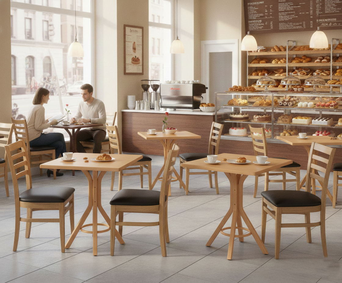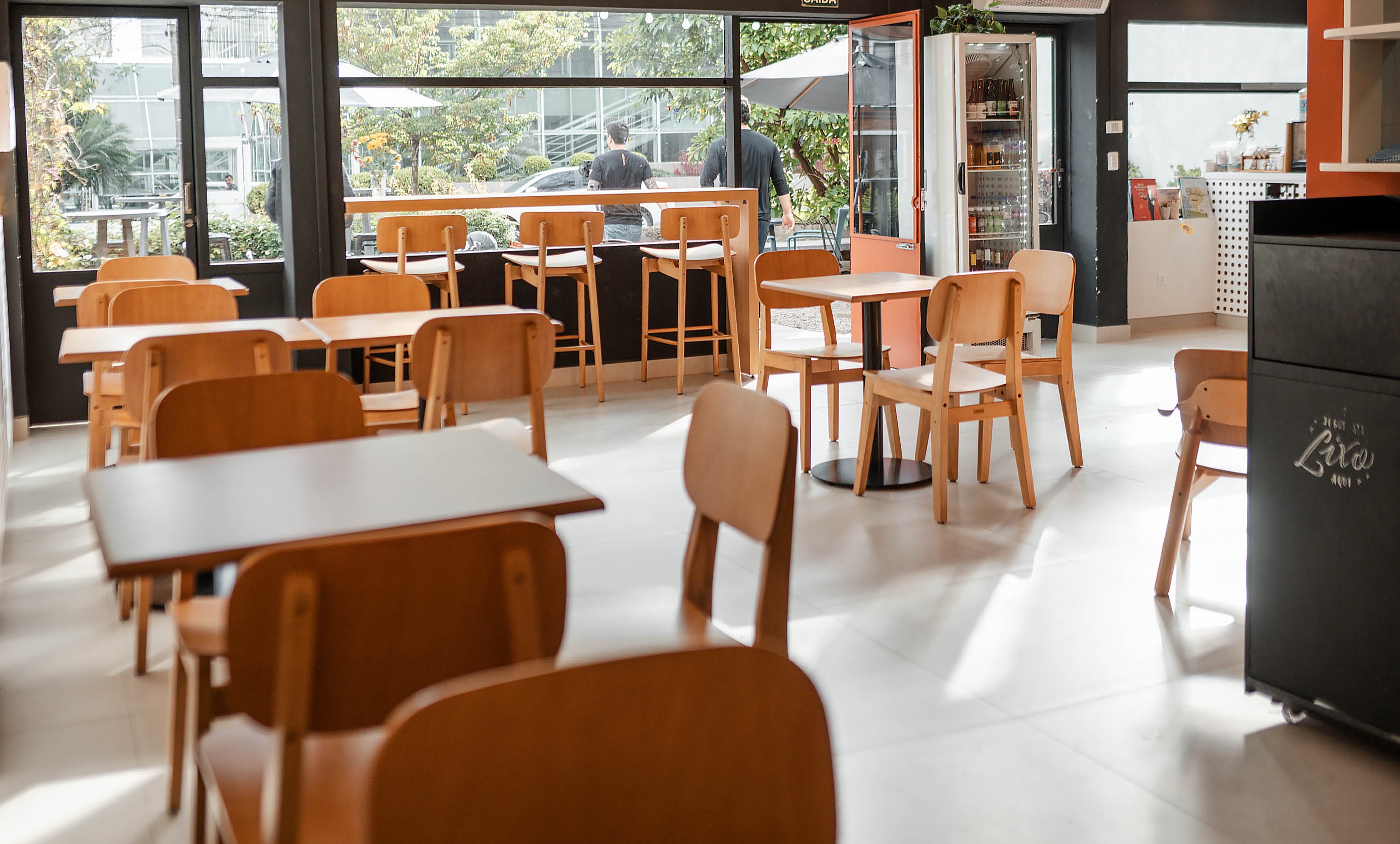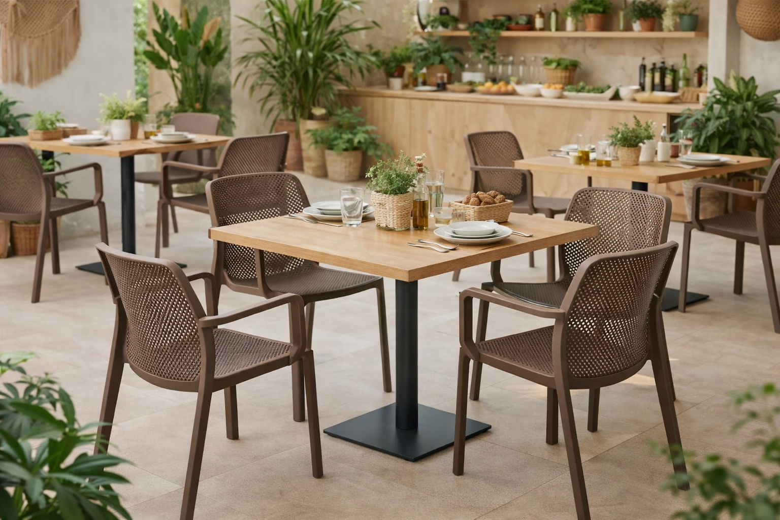 Nós fornecemos móveis pensados para uso intenso em restaurantes, bares, cafés, bistrôs, hotéis e áreas externas.