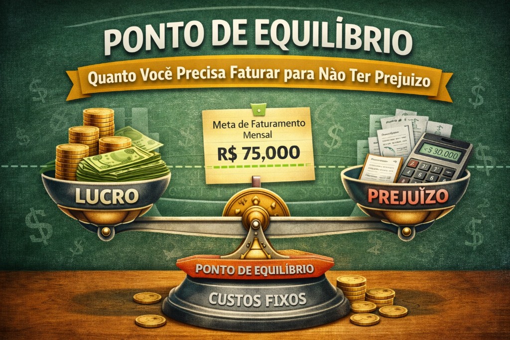 O ponto de equilíbrio é o valor mínimo de faturamento mensal para pagar todas as contas — sem lucro e sem prejuízo.