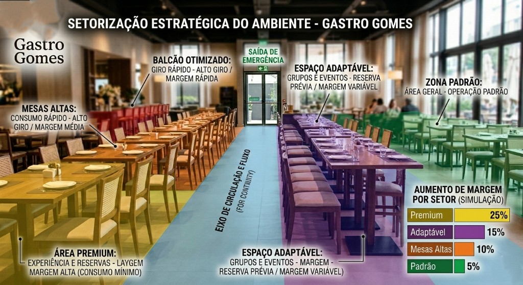 Restaurantes que operam com setores estratégicos aumentam margem sem precisar ampliar metragem.