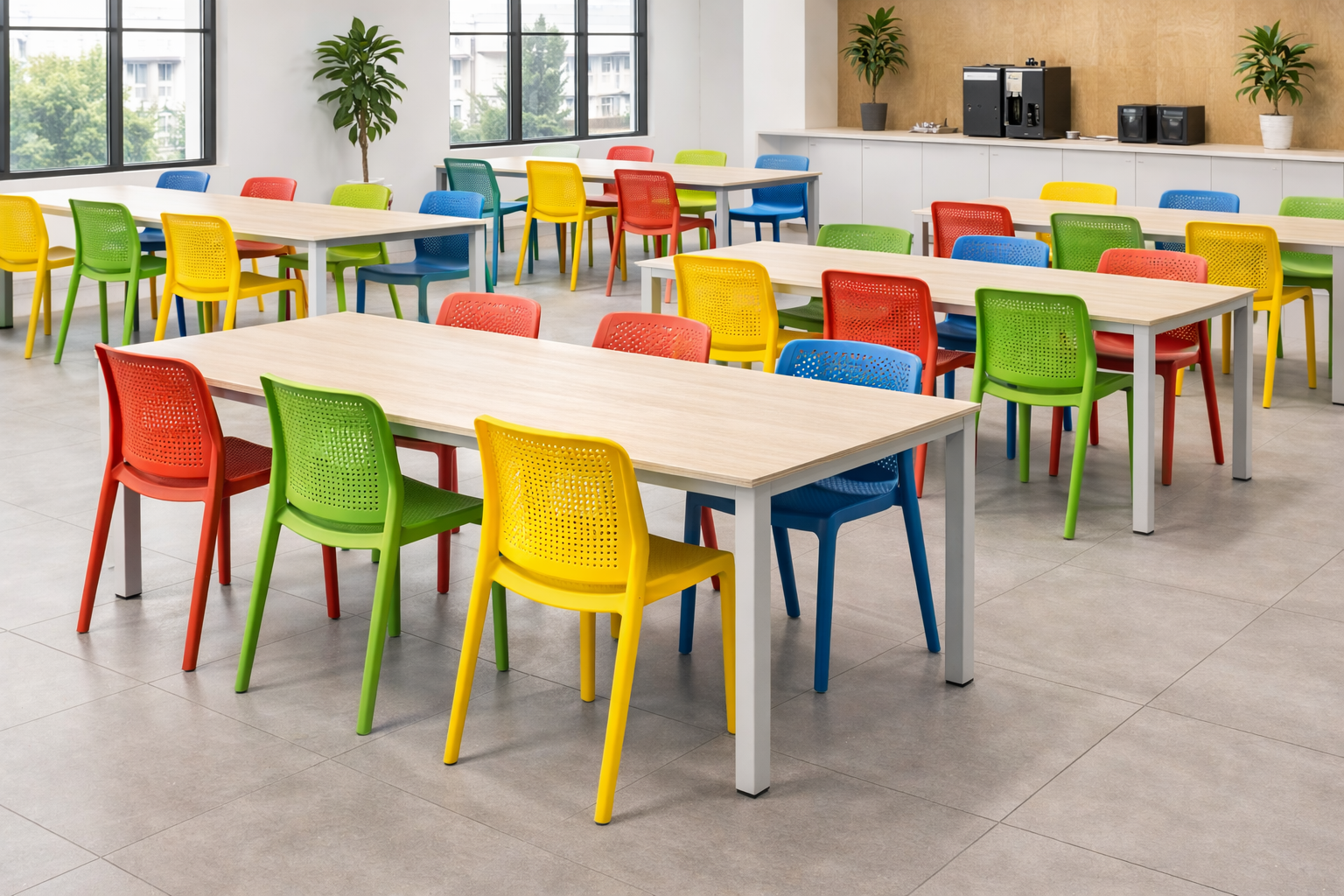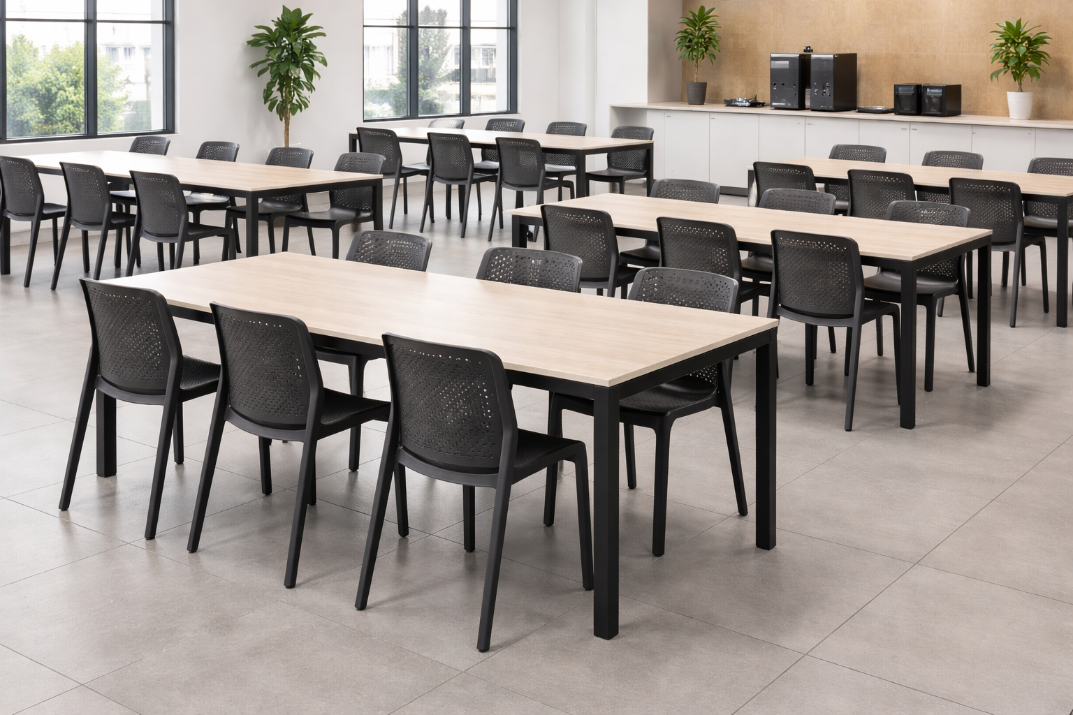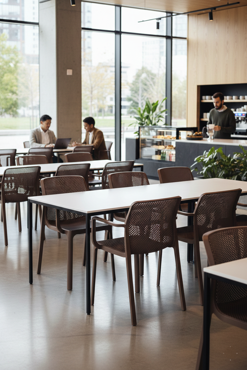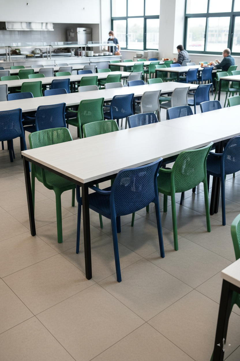 Soluções profissionais em mesas e cadeiras para refeitórios industriais, empresariais, escolares e institucionais. Mais durabilidade, melhor organização e conforto no uso diário.